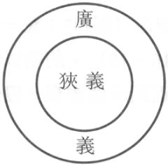 天国有两种解法。广义而言,指所有人承认神是绝对的统治者;狭义而言,指那些真正悔改归主的人。可用下列圆圈表示这概念: