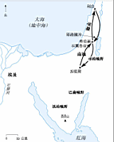 探子从寻的旷野最南端的加低斯出发,走到北端的利合,来回路程共约八百多公里。