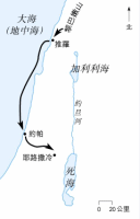 虽然犹大曾有几位好君王,也有适时的改革,可是人们没有真正的改变。他们的邪恶依然,终致神使用巴比伦王尼布甲尼撒征服犹大,毁灭耶路撒冷,把犹大人掳到巴比伦去。图中示出了犹大人被掳的具体路线。──《灵修版圣经注释》