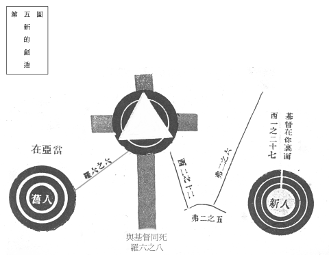 神完全的恩典很希奇的表显在这种同钉十字架的荣耀的事实里,──罪人与救主一同在十字架上,祇要人的信仰能够完全,就可使这种事实变成他心灵的经验中一种荣耀的真体。一个人要确切的从肉体的境界里救赎出来,并且要使‘旧人’确能退位;那末全靠他了解和接受这种同钉十字架的事实。新人的创造──与基督一同复活。